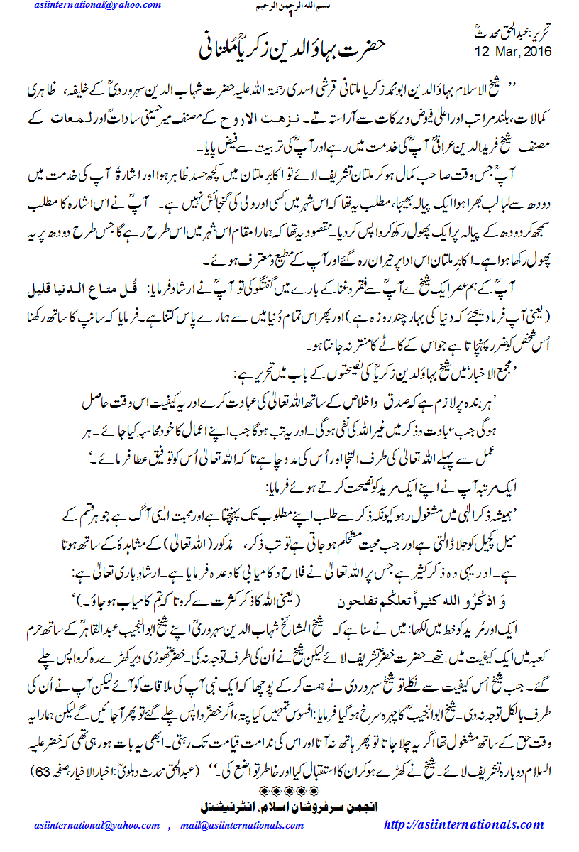 بہاوالدین زکریا ملتنانی رح - Bahaud din Zikriya Multani R.A.